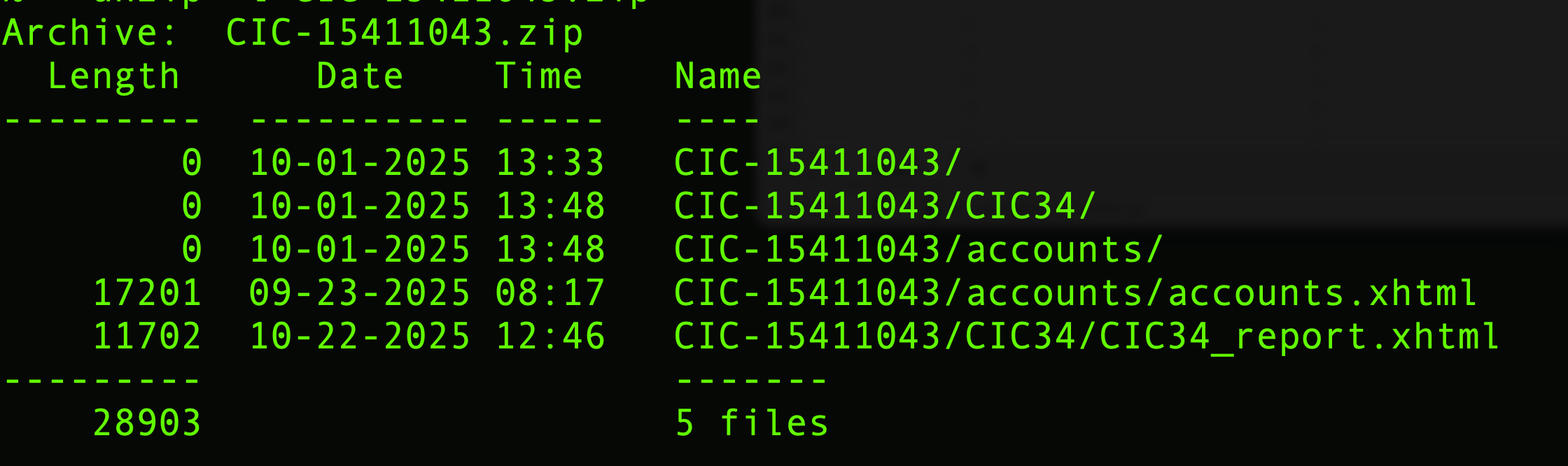 • Missing required directory called “CIC34” which should be inside the “CIC-{companyNumber}” directory